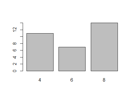 t<-table(mtcars$cyl) #getting the counts of each unique value barplot(t)