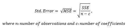 The Residual Standard Error (RSE) shows the residual variation i.e. the average variation of the observations points around the fitted regression model. The formula that calculates RSE is;